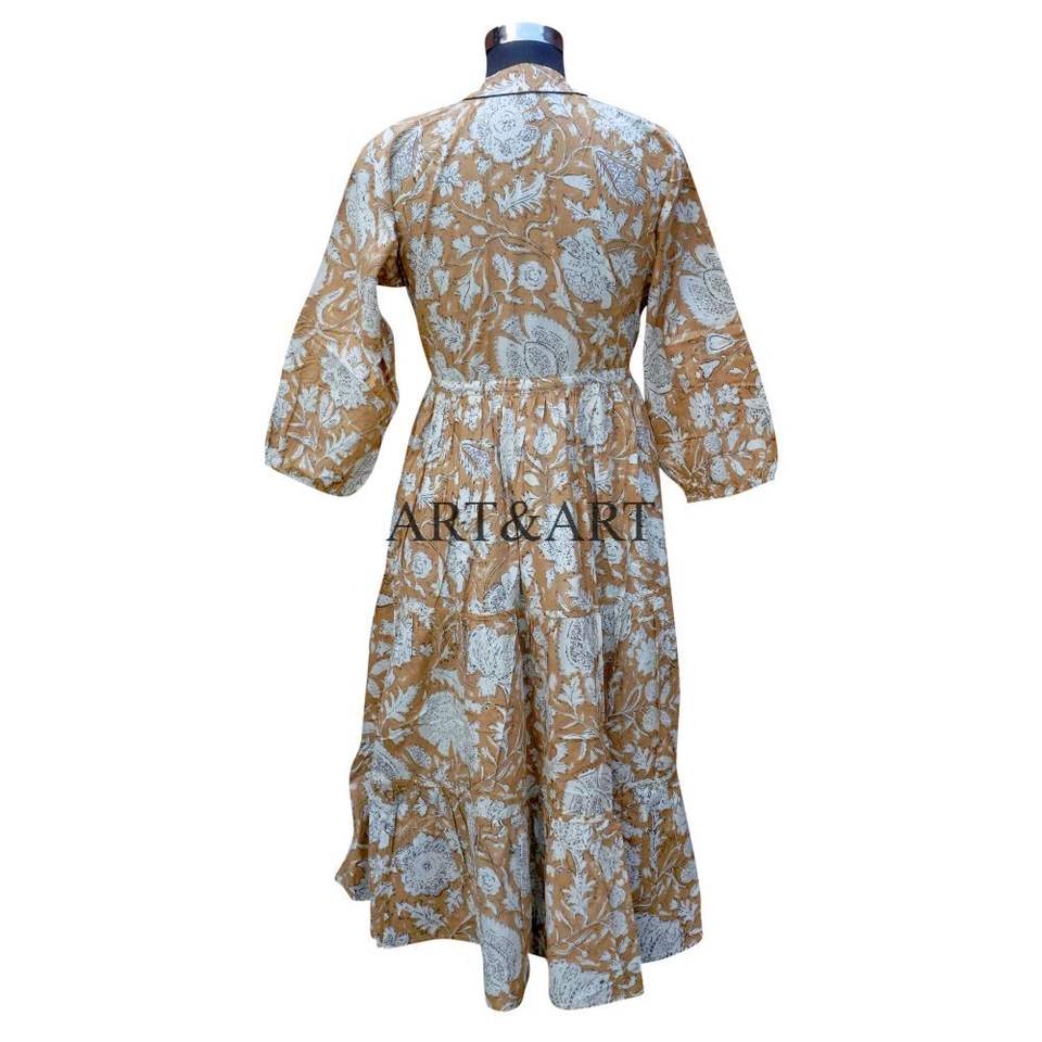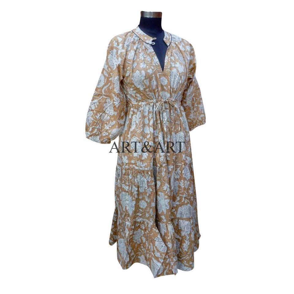 Robe d'été mi-longue en coton indien à imprimé floral numérique, faite à la main, écologique, confortable, style vintage, formelle pour femmes