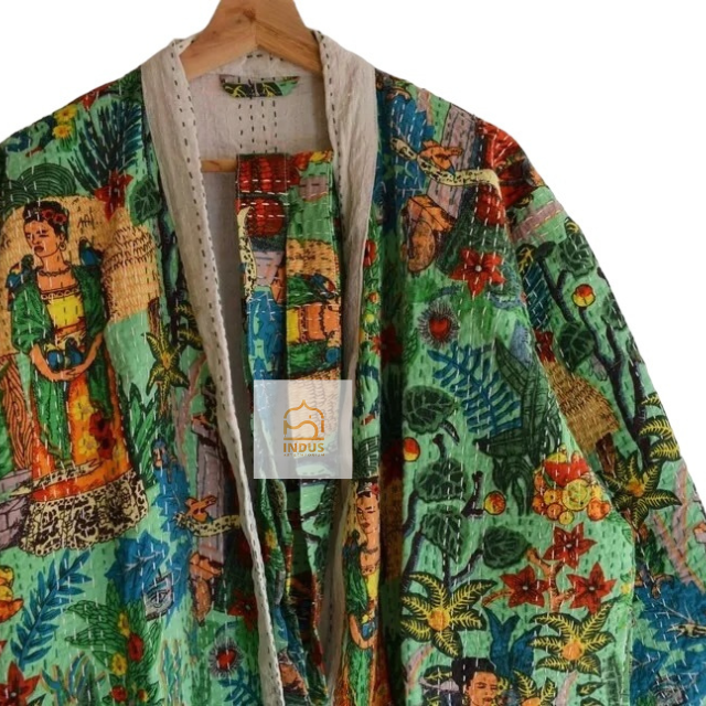 Peignoir Kantha en coton indien imprimé main bloc Peignoir Kimono en coton à imprimé floral Peignoir enveloppant