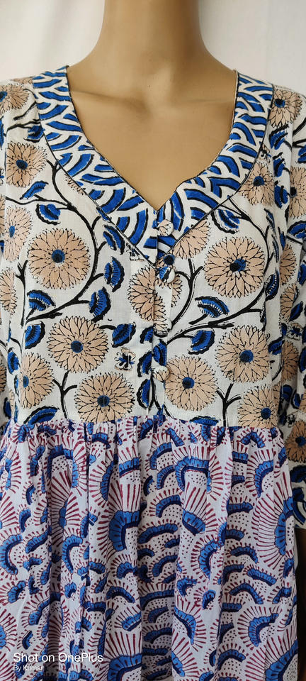 Coton indien imprimé main bloc été plage nuit Bikini vêtements de nuit robe caftan pour femmes longue Kimono grossesse Vintage tuniques