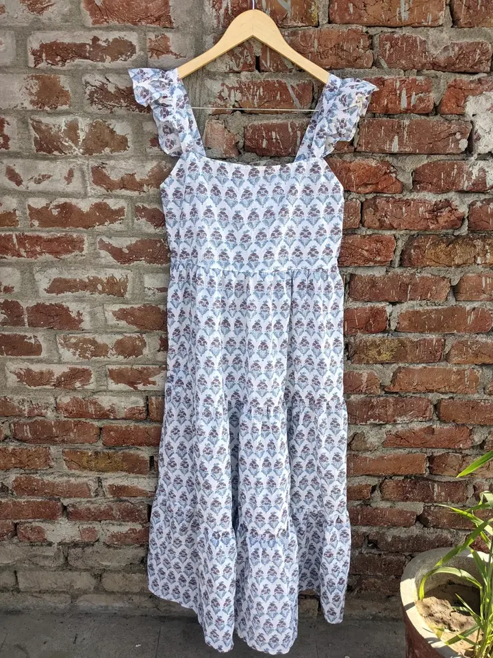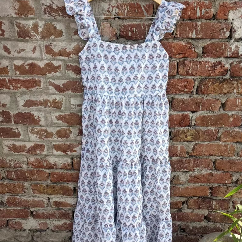 Robe longue imprimée à la main en coton indien Robe d'été à imprimé floral indien Robe d'été en coton sans manches pour femme