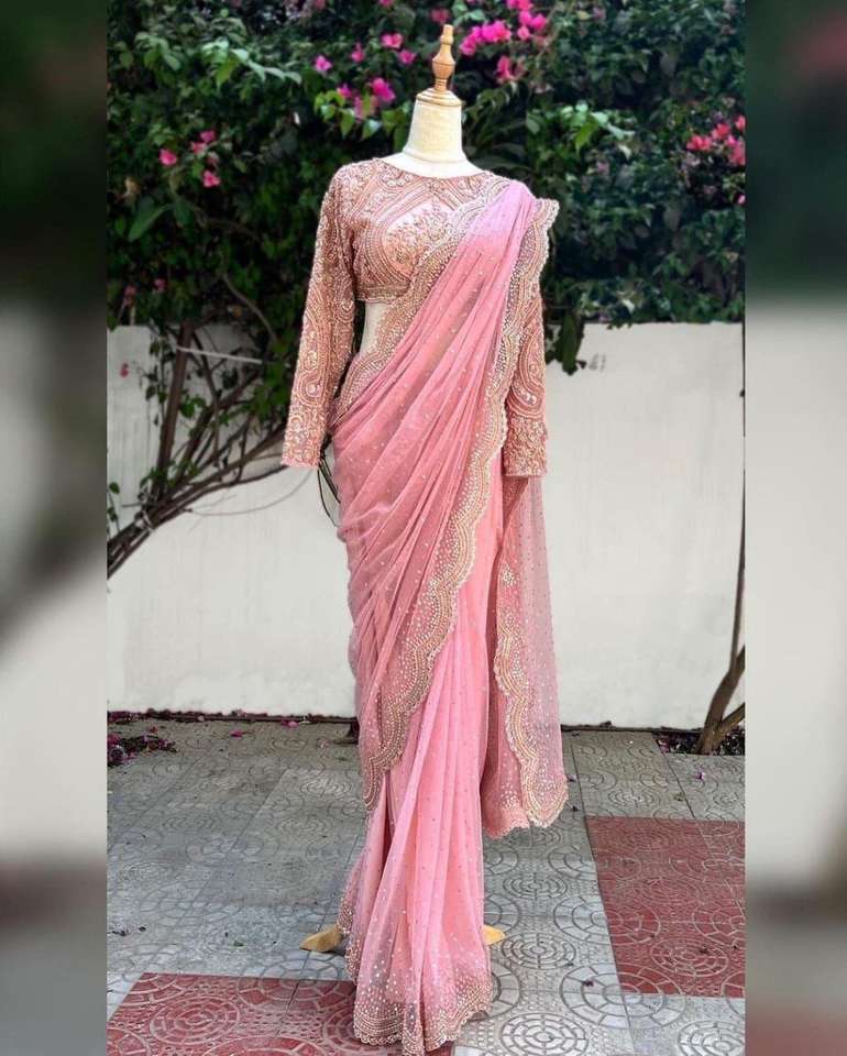 Designer indien dernière couleur rose exclusive Georgette Saree chemisier élégant élégant fantaisie à la mode fête mariée mariage porter des femmes
