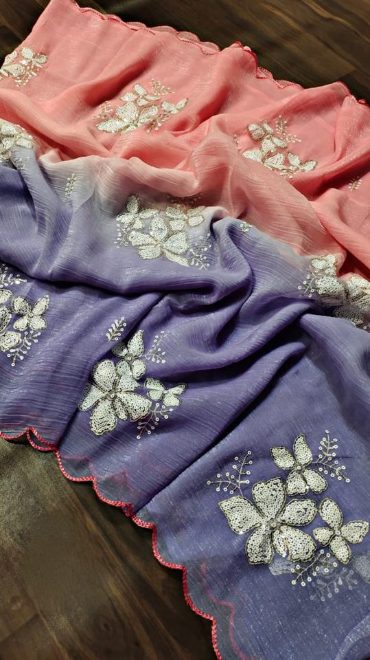 Saree en soie croquante douce de designer indien avec un beau travail de séquence, saree de mariage et de fête de style pakistanais.