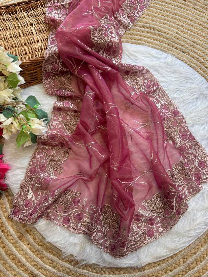 Saree traditionnel en soie douce de créateur indien avec un beau travail de broderie pour les mariages et les fêtes