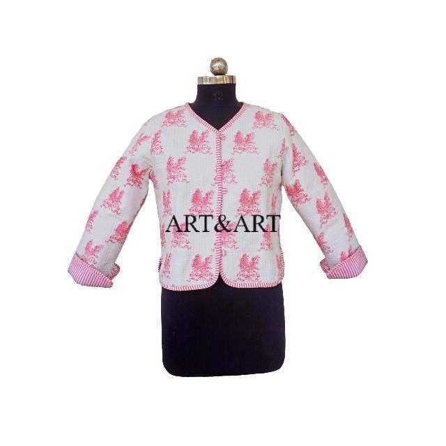 Veste en tricot matelassée réversible respirante à imprimé numérique indien, faite à la main, motif floral pour femmes, coton biologique écologique