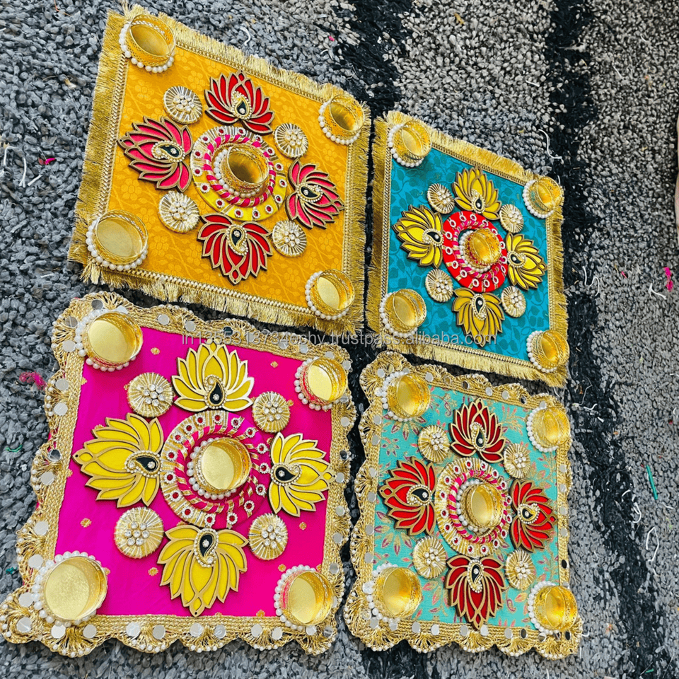 Indien écologique décoratif carré Rangoli tapis bois 10 "décoration de la maison Diwali cadeau festif Rangoli plateau pendaison de crémaillère