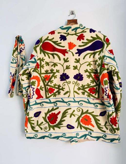 Indian Ethnic Bohemian Suzani Boho Traditional Flowers Robes New Arrival Fashionable Wholesale White Quilted Winter Jacket