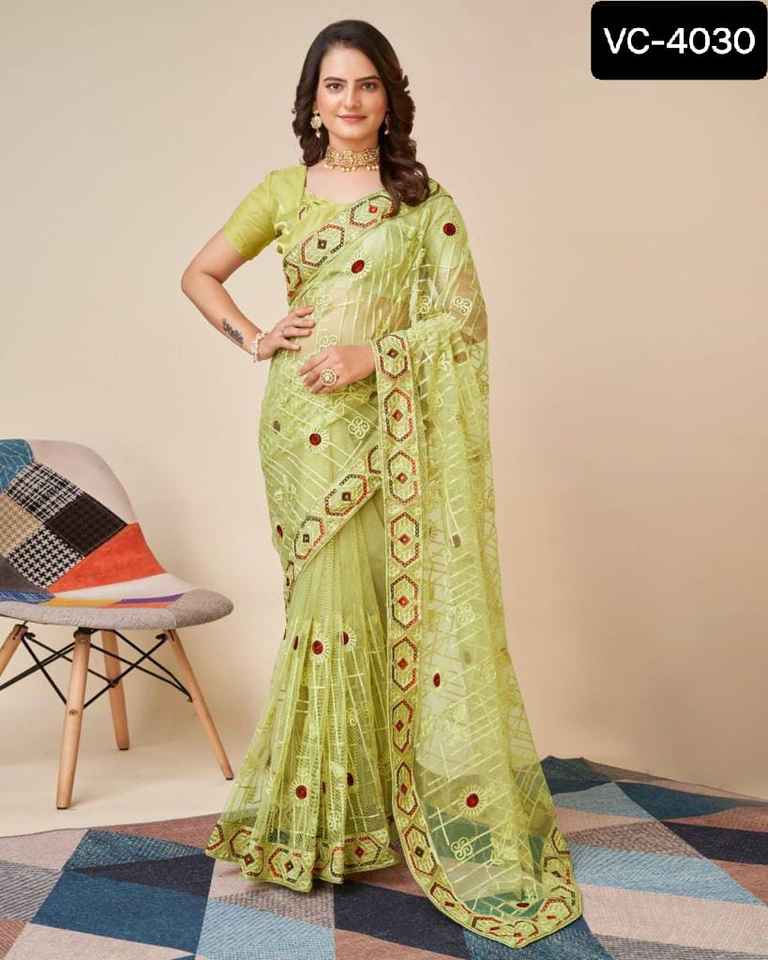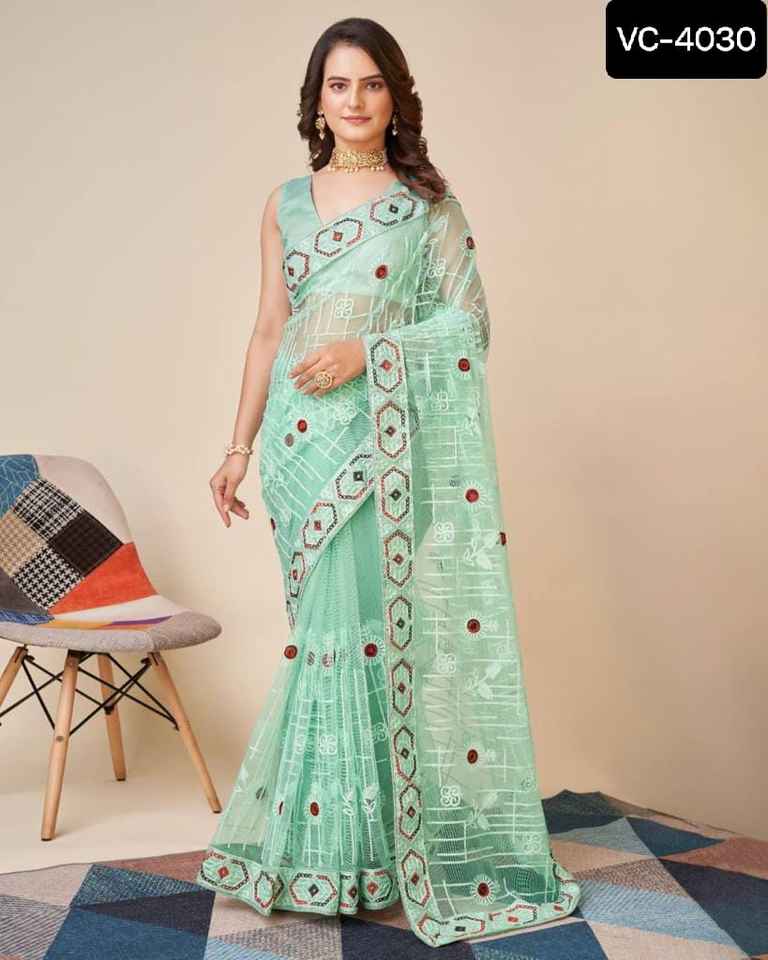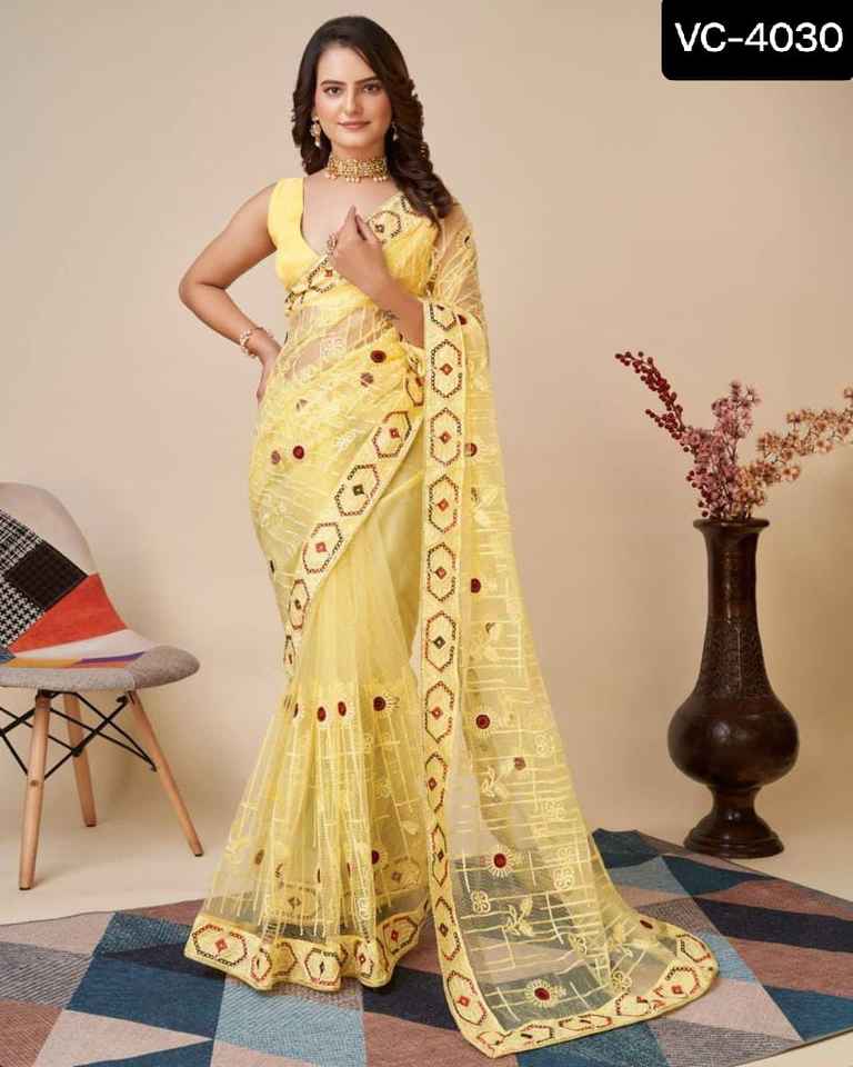 Collections ethniques indiennes Tissu doux en filet Saree Mono Banglory Blouse Pièces Party Wear Fantaisie Motif Soie Saree Indien