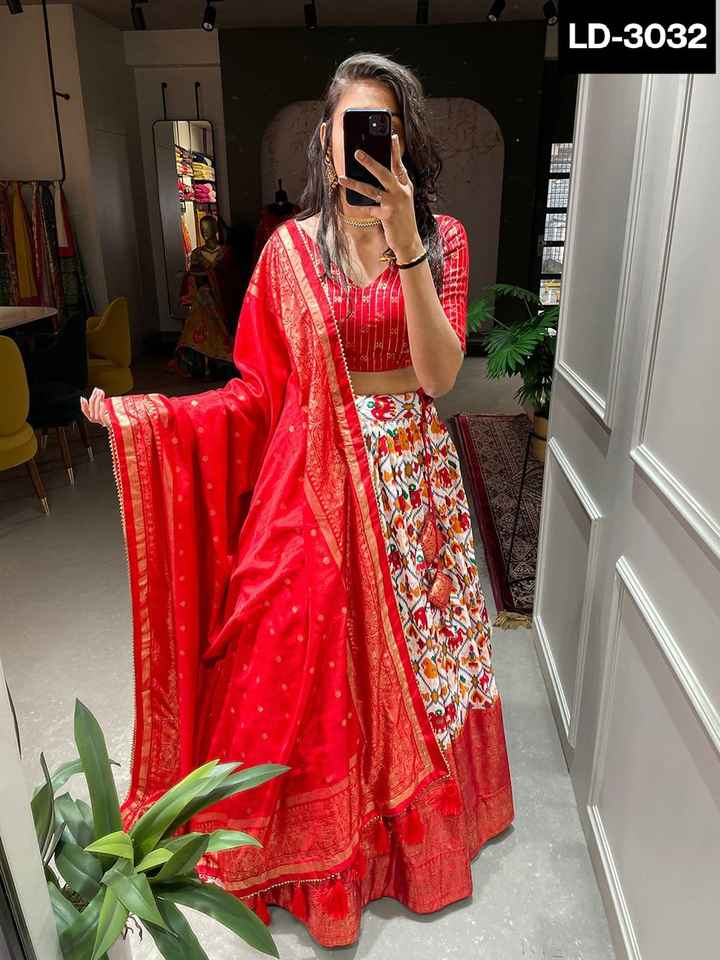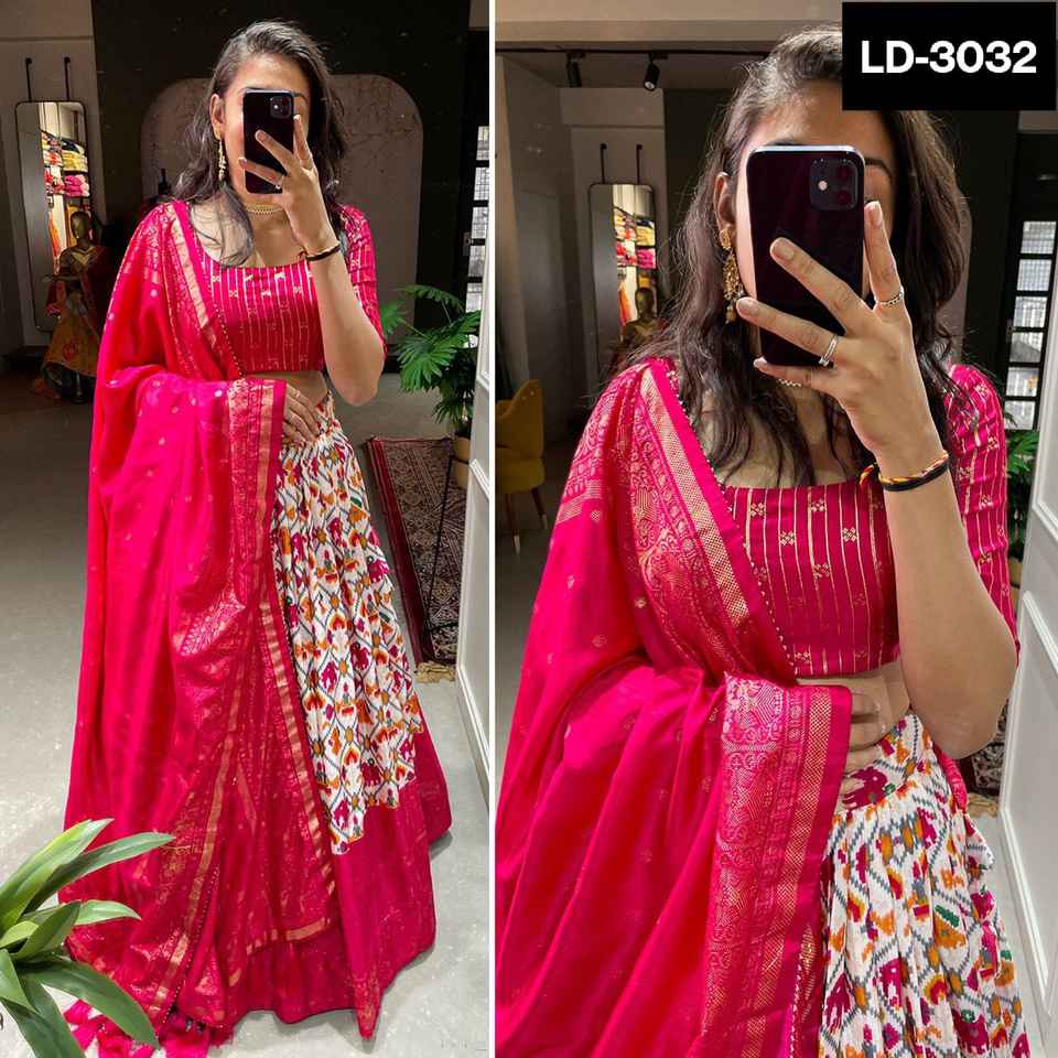 Indian Ethnic Dola Silk Patola Print Lehenga Choli with Foil Work Canvas Attached Can Can in Lehnega Dupatta Pakistani Clothing