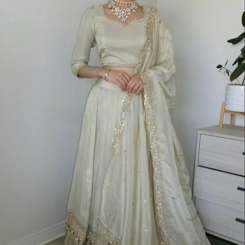 LEHENGA WORK:Embroidery Sequence Work with diamond