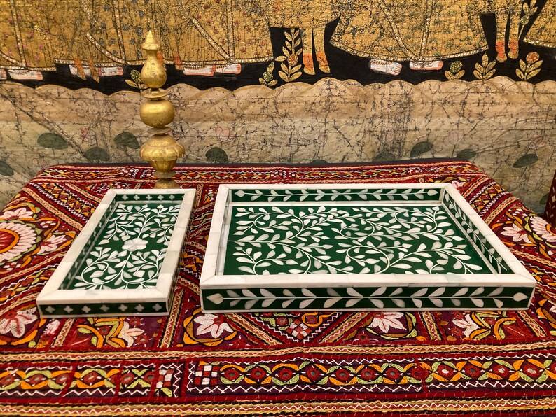 Qualité d'exportation indienne fait à la main Durable moderne carré os plateau de service fantaisie incrustation conception pour la maison hôtel Restaurant utilisation de mariage