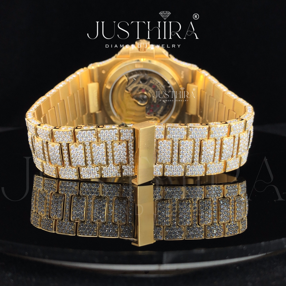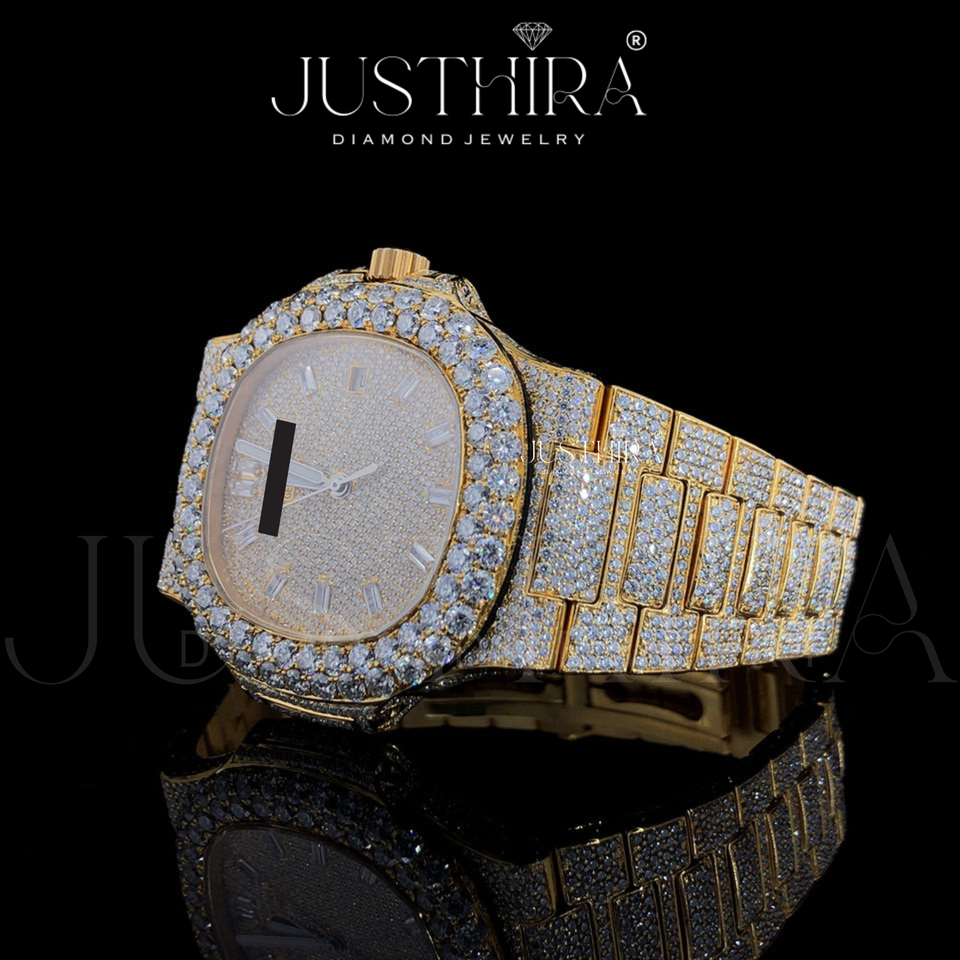 Montre de luxe à quartz personnalisée avec diamants Moissanite, style Hip Hop, pour homme et femme, disponible à la vente, exportateur indien