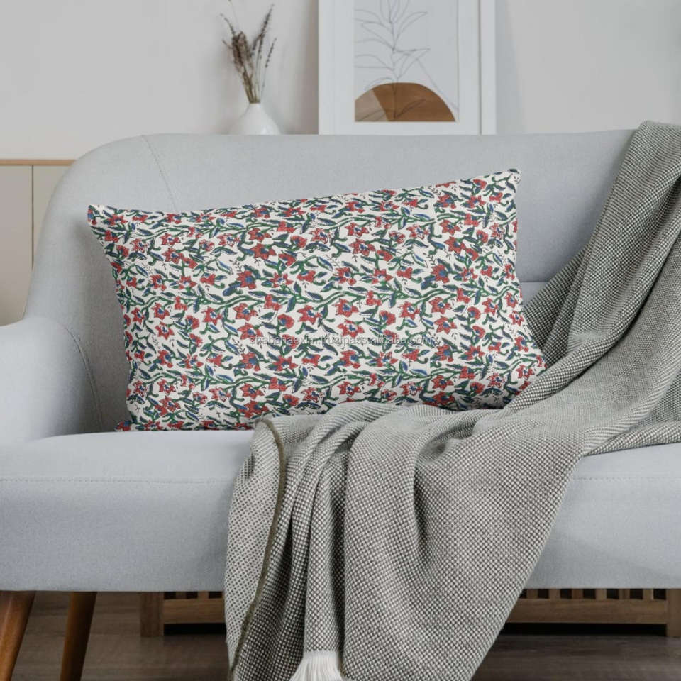 Housse de coussin imprimée à la main en Inde avec motif géométrique et floral bohème 14x36 Housses de coussin imprimées