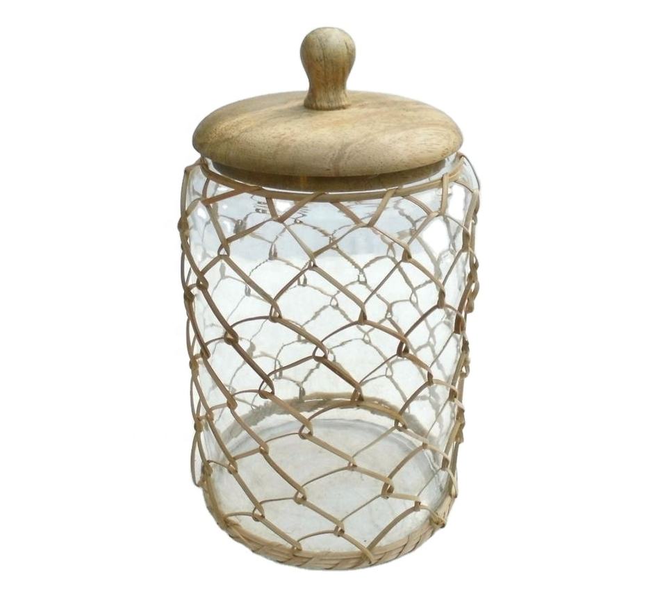 Indian Factory Wholesale Multi-Design Glass Food Storage Container with Bamboo Lid Economical Storage Jar