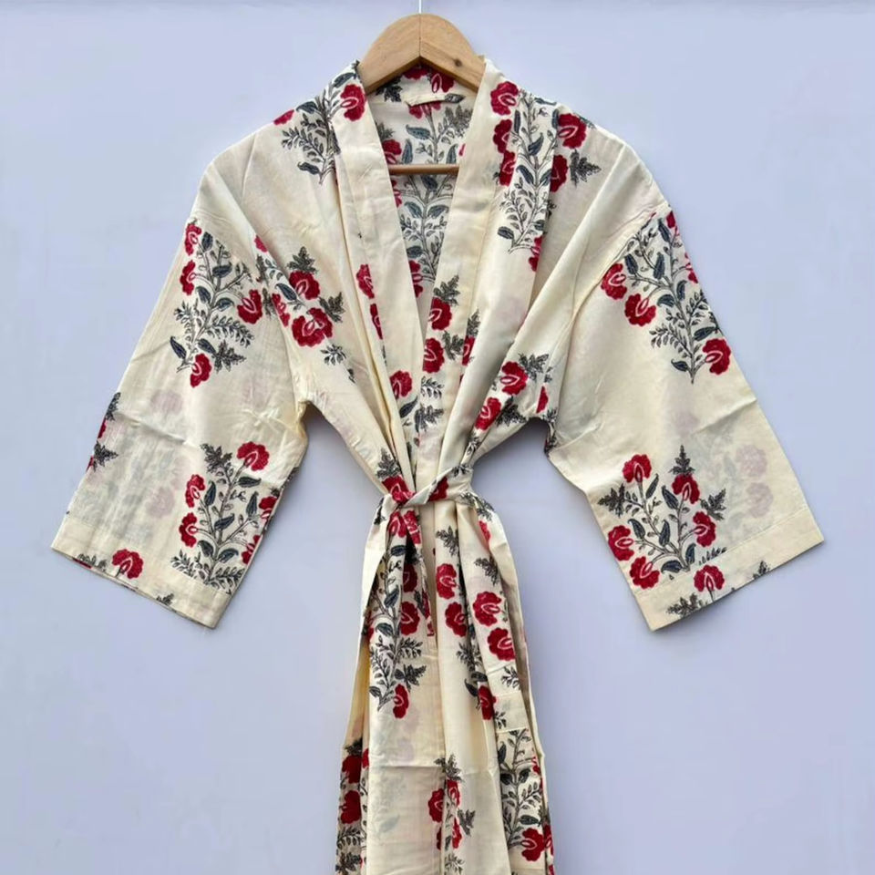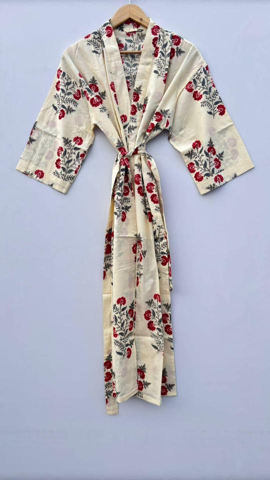 Robe à imprimé floral indien avec décoration en dentelle, peignoir élégant, vêtements de nuit pour femmes, peignoir long en coton luxueux, kimono unisexe