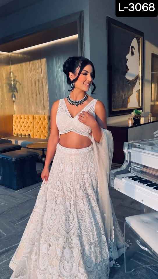 Chemisier indien en georgette avec fil de pêche et paillettes Lehenga Choli et Net Dupatta avec fil de pêche et paillettes