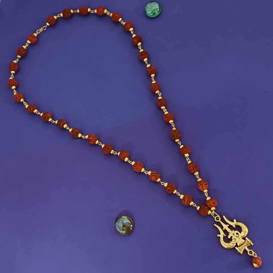 Feature:Rudraksha Trishul Damroo Necklace, designer religious style necklace