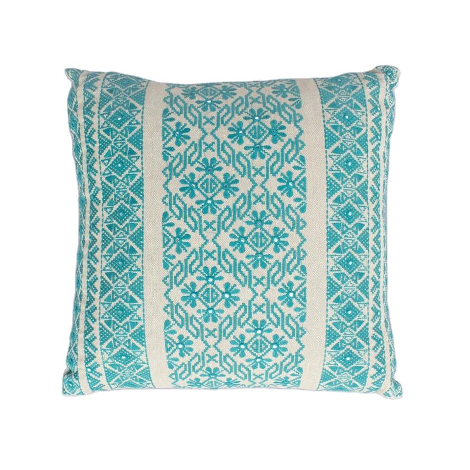 Housse de coussin avec broderie géométrique vert indien,, 16X16 pouces, dernière conception, décoration de maison personnalisée