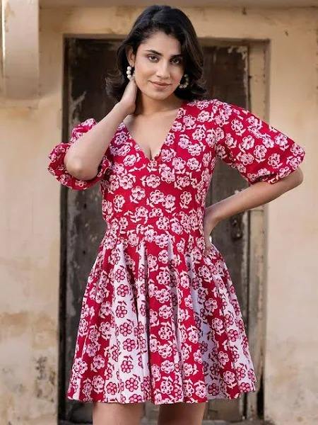 Indien main bloc coton robe écologique imprimé fleuri tenue de fête d'été pour les femmes Style Boho cadeau personnalisé naturel