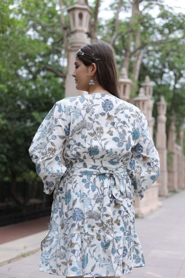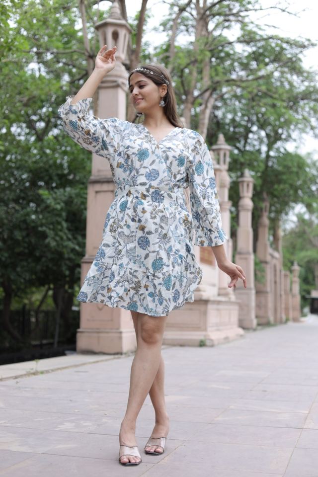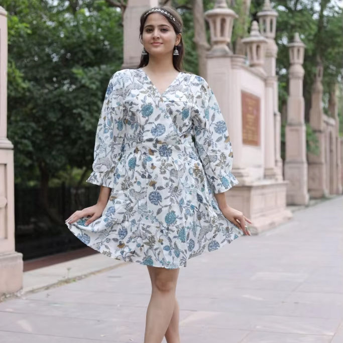 Robe indienne à imprimé floral en coton avec bloc à la main, tenue de fête d'été pour femmes, style boho, robe cadeau de mariée personnalisée en solde