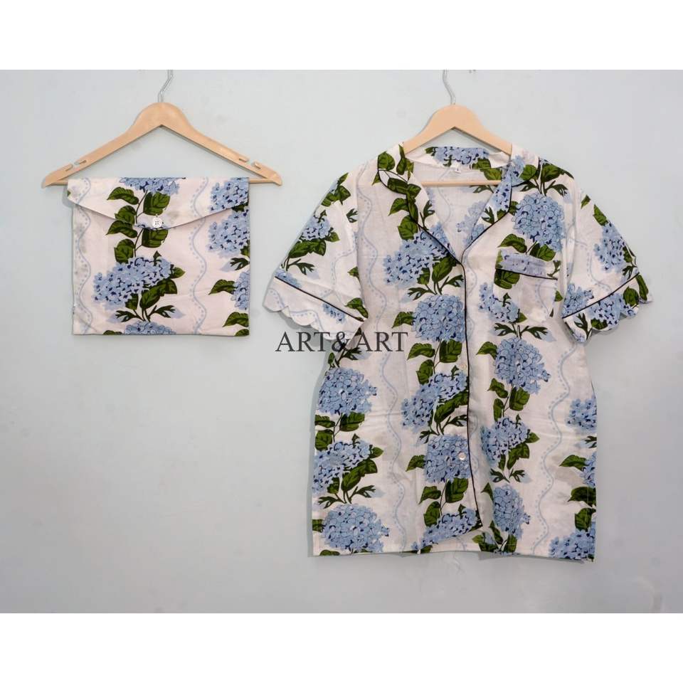Ensemble de pyjama en coton indien imprimé à la main pour femmes et hommes, imprimé floral, vêtements d'été courts, élégants, pour la vie quotidienne, mode personnalisée