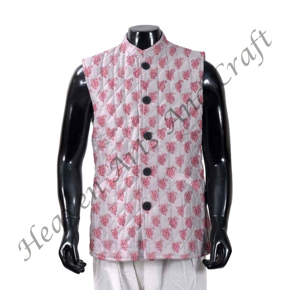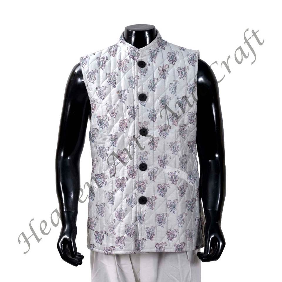 Manteau bohème matelassé imprimé main indienne pour hommes veste en pur coton avec fermeture à bouton pour la saison d'automne