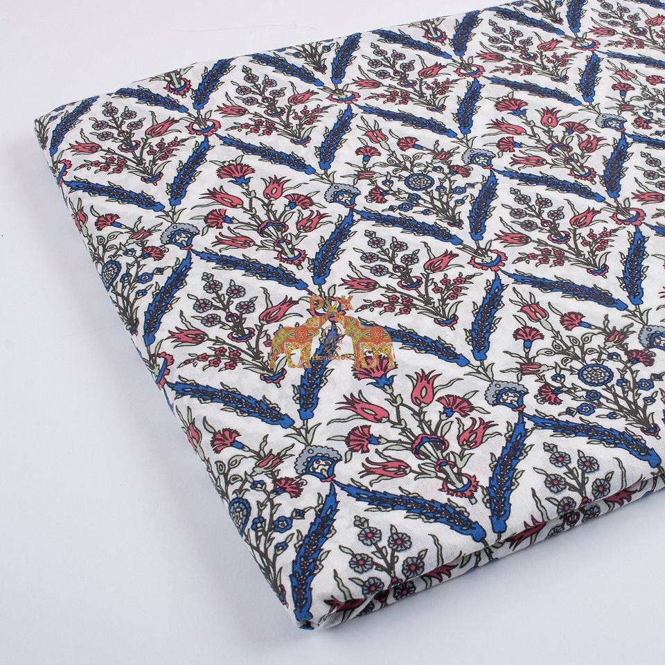 Indian Hand Block Print Soft Fabric by Meter 100 % Pure Cotton Voile Fabric for Dress Making ,Sewing, Crafting