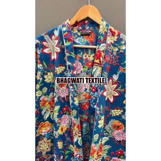 Kimono indien à main imprimé 100% coton biologique Cambric Spaghetti Floral Design taille libre respirant printemps été automne