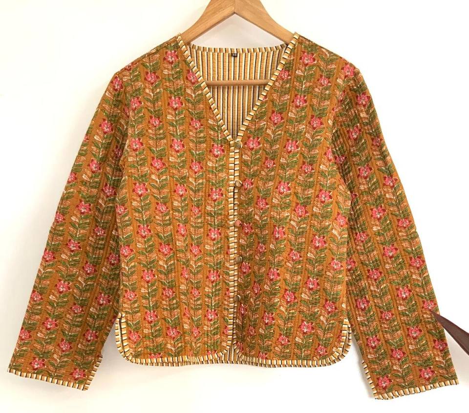 Veste matelassée en coton imprimé bloc à la main indienne pour femmes respirant bouton floral réversible toutes saisons maillot de vêtements d'extérieur décontractés