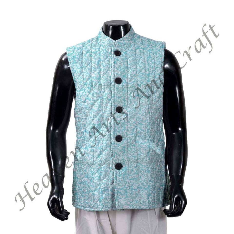 Indien main bloc imprimé tissu coton matelassé veste vêtements pour hommes veste courte à la main manteau nouveau Style bloc impression coton veste
