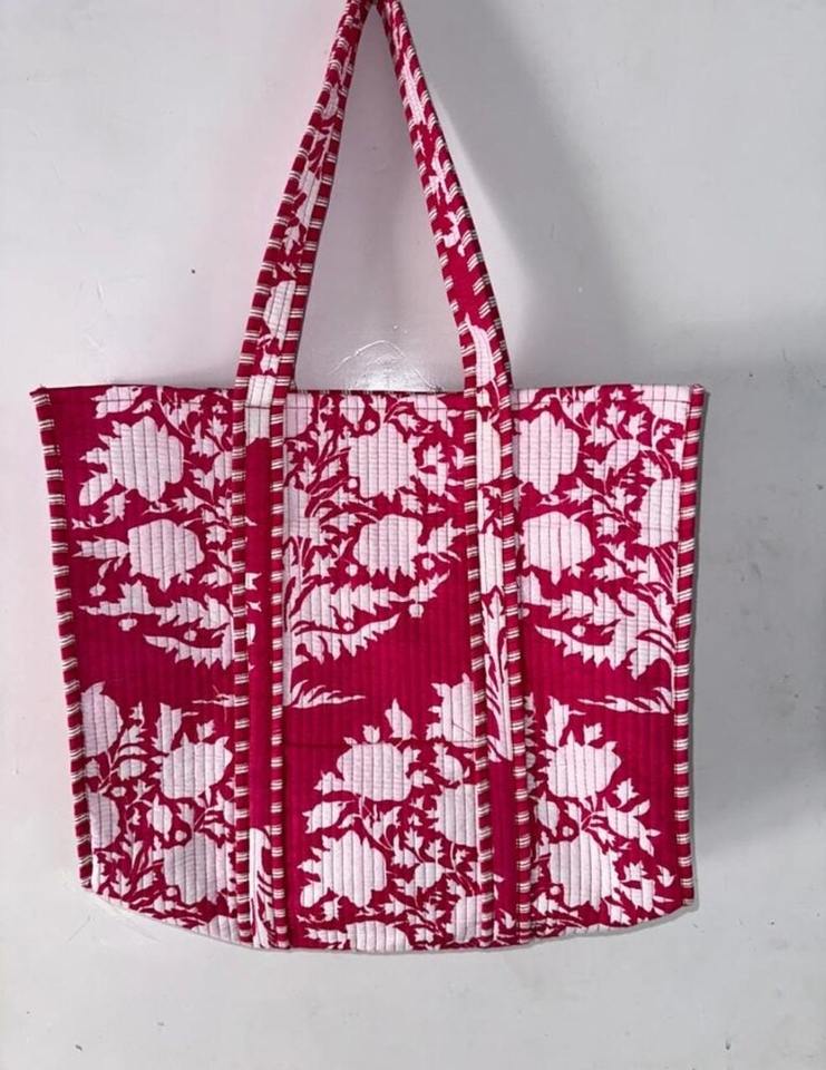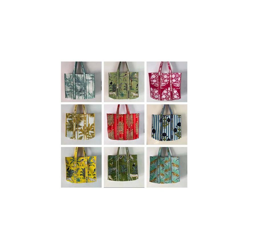 Indien main bloc imprimé matelassé épaule sac fourre-tout unisexe 100% coton Shopping sac fourre-tout deux poignées fermeture ouverte Style de mode