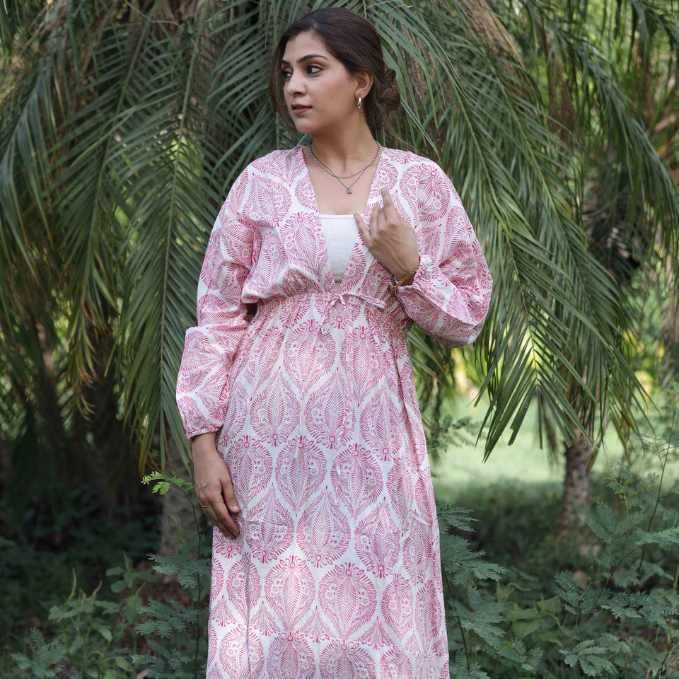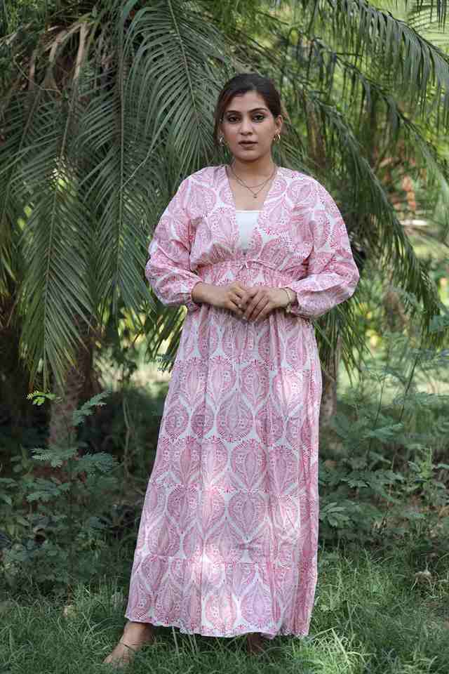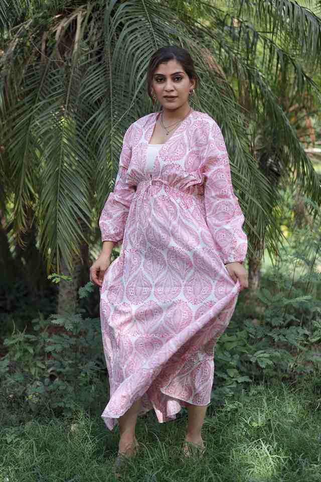 Robe courte imprimée à la main indienne pour femmes Robe d'été décontractée en coton Robe longue courte de style boho Tissu naturel à la taille