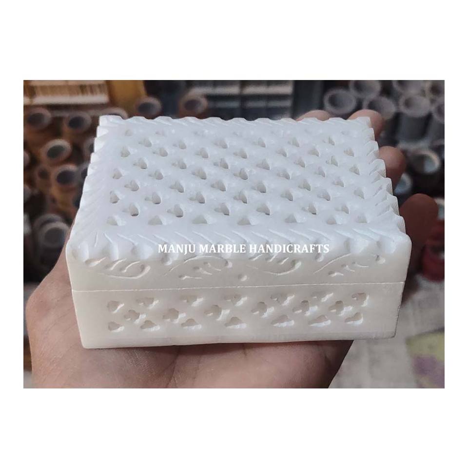 Boîte de Jali en marbre de conception de sculpture indienne fabriquée à la main boîte d'incrustation de marbre douée à la main boîte d'artisanat en pierre décorative en forme de rectangle