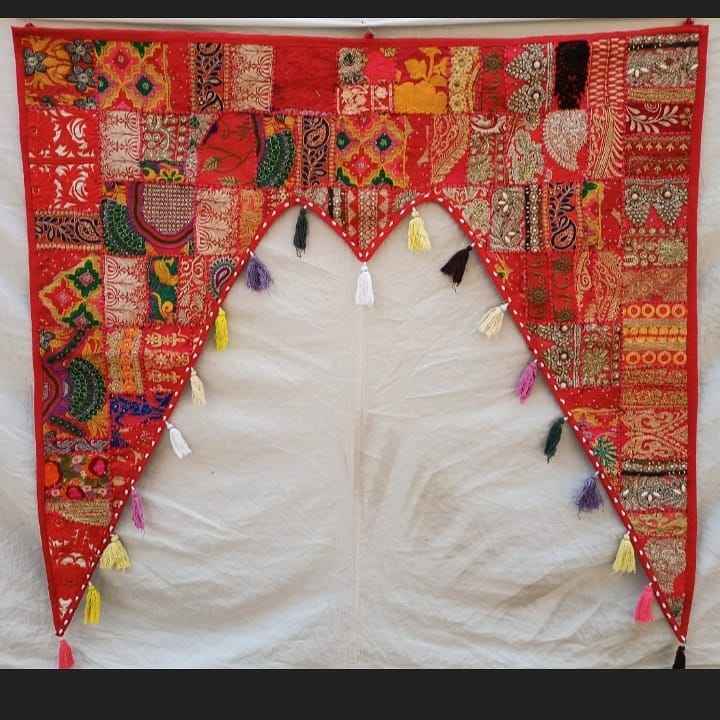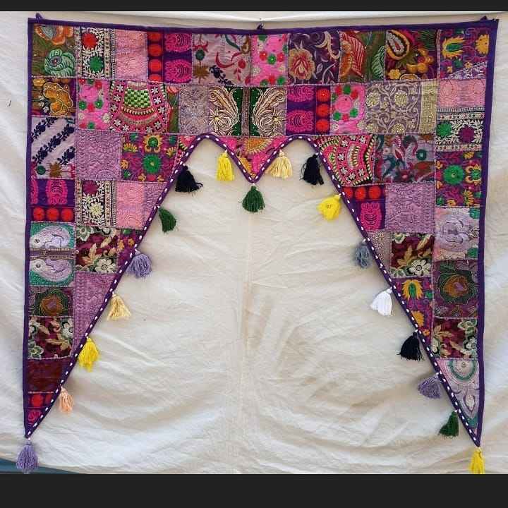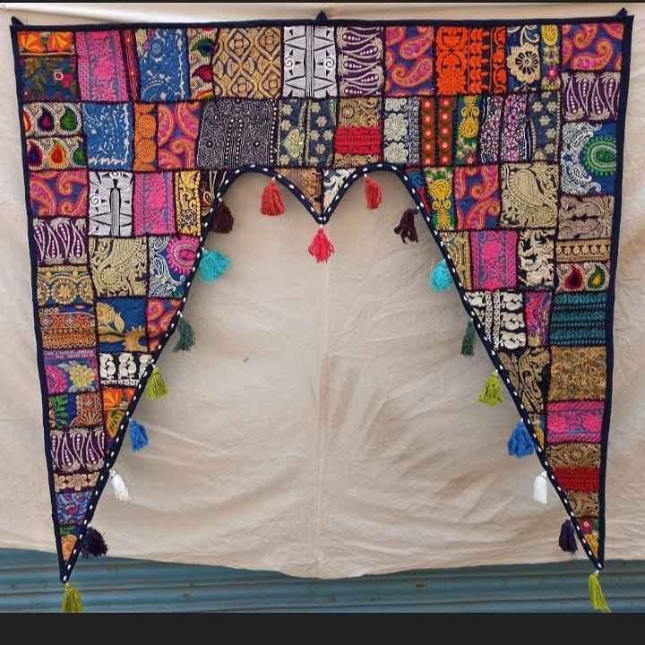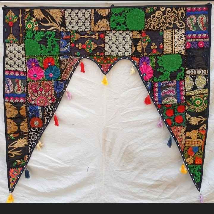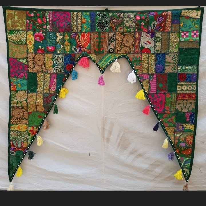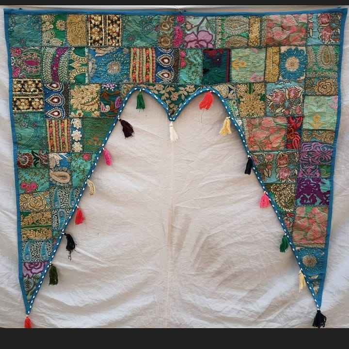 Toran indien traditionnel brodé à la main, patchwork vintage, pour porte, décoration de maison Bandhanwar, grande frange de porte (Bleu)