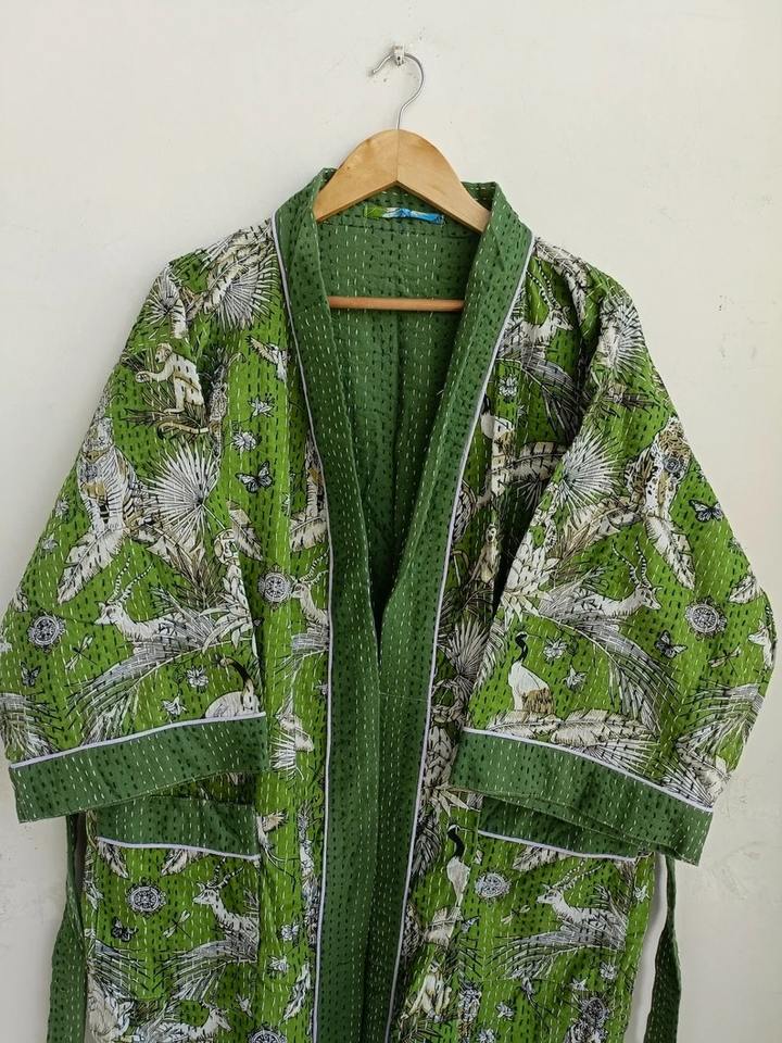 Indien Handblock Imprimer Coton Kantha Matelassé Kimono Robe Plus La Taille Bain Spa Robe Coverup Wrap Robe pour l'été pour les hôtels Printemps