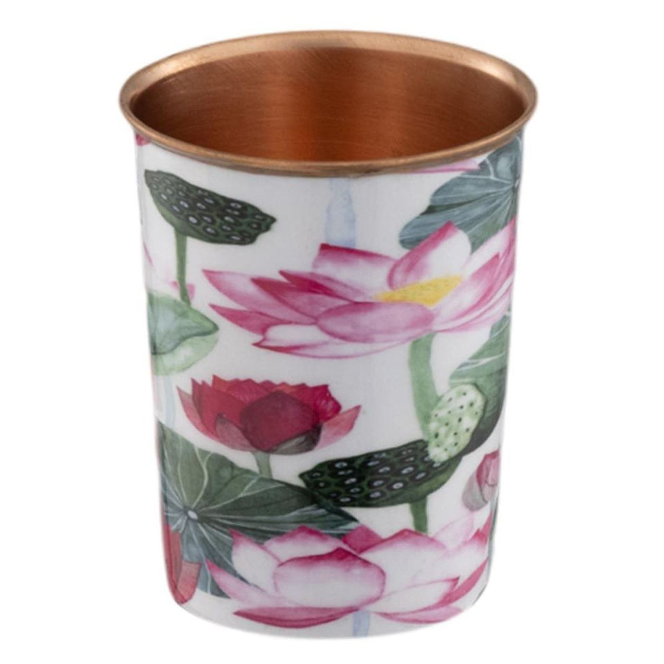 Qualité d'exportation de conteneur d'eau en cuivre pur fabriqué à la main indien avec 2 bouteilles d'eau potable en cuivre de conception imprimée en émail de verre