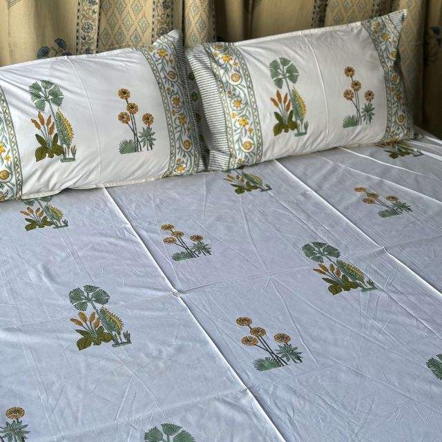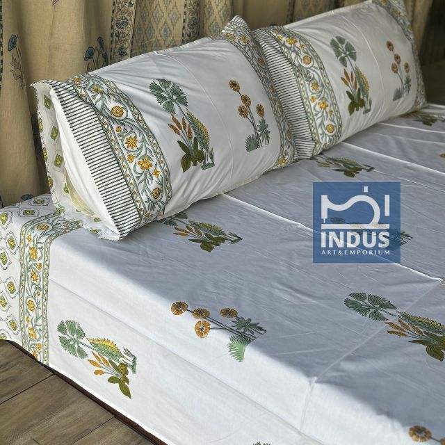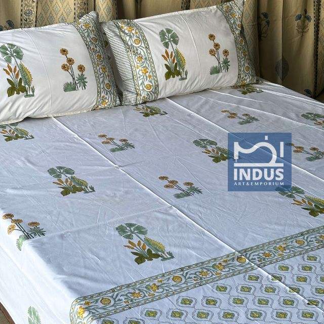 Sanganeri indien fait à la main bloc de draps imprimés ensembles de literie drap de lit avec taie d'oreiller