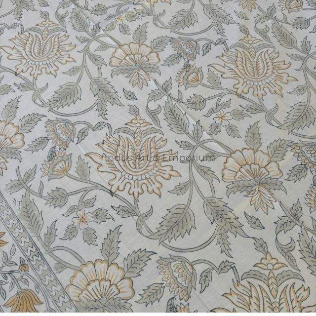 Parure de lit en coton imprimé à la main Sanganeri indien, motifs floraux bleus, draps et taies d'oreiller