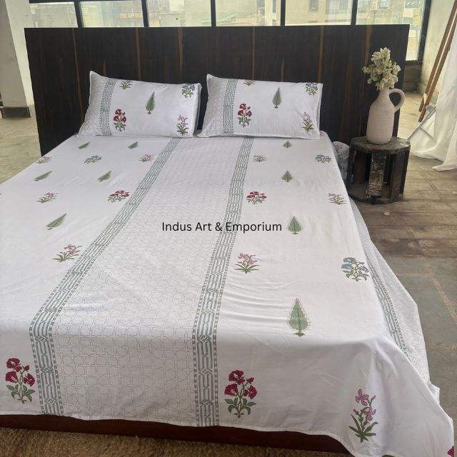 Draps de lit imprimés Sanganeri faits à la main indiens ensembles de literie drap de lit avec taie d'oreiller