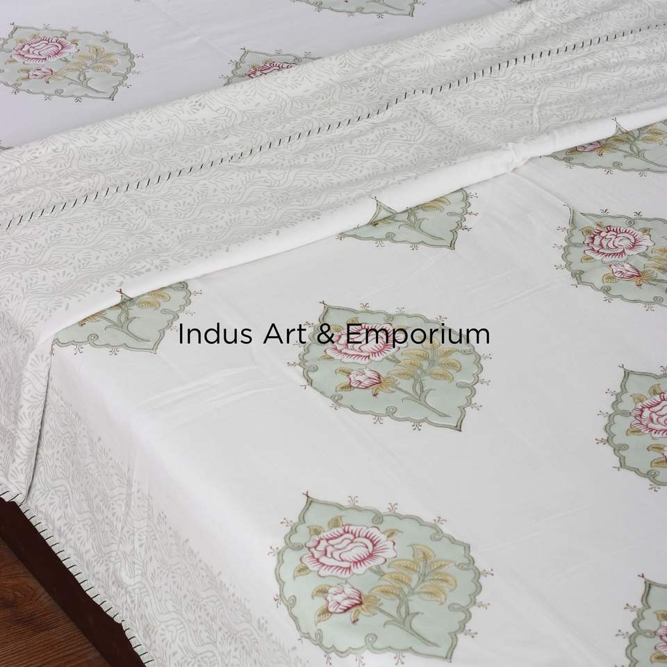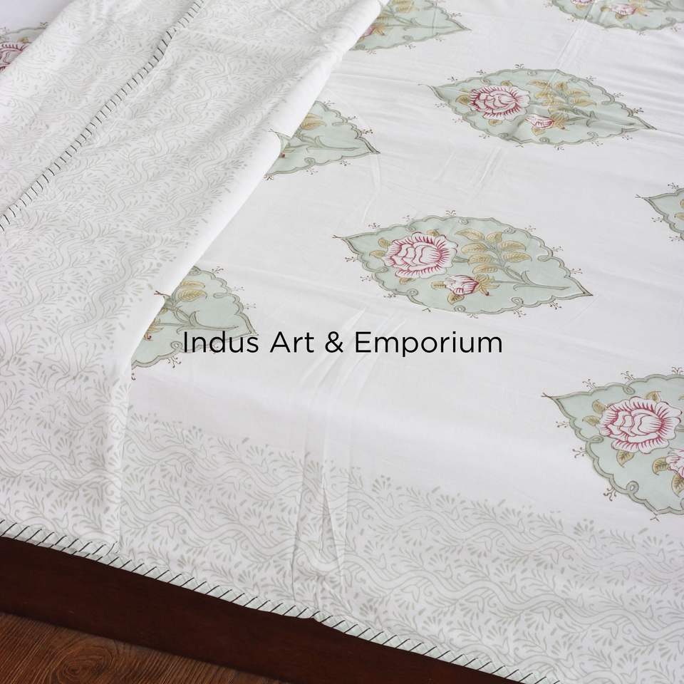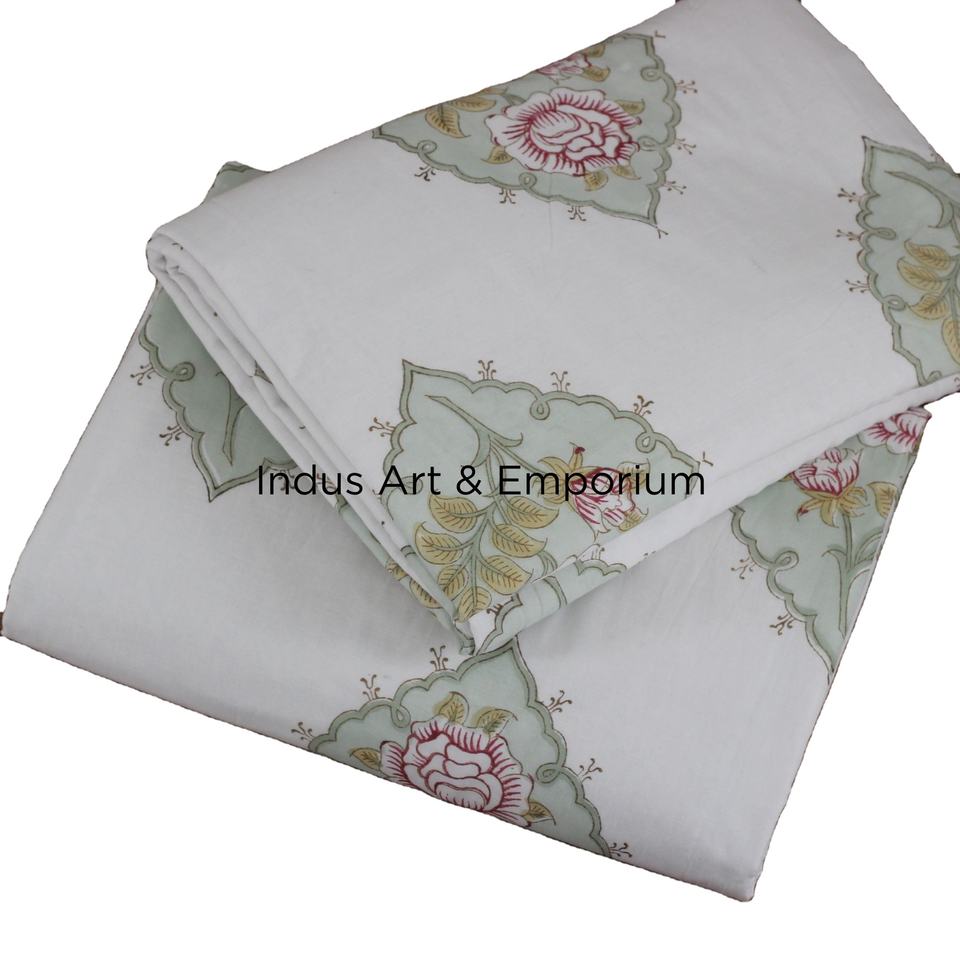 Sanganeri indien fait à la main bloc de draps imprimés ensembles de literie drap de lit avec taie d'oreiller