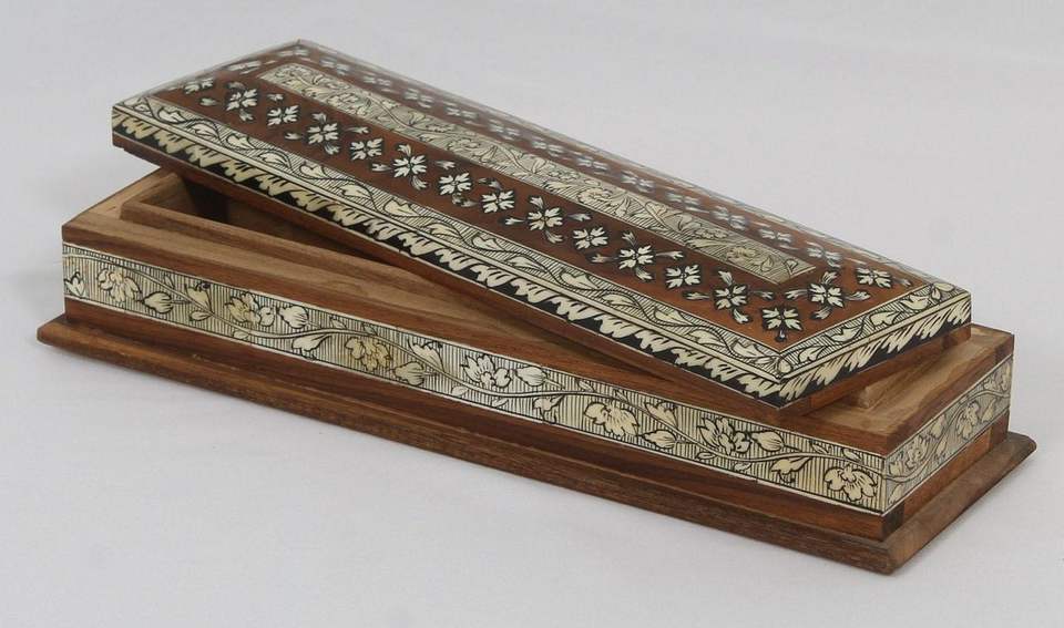 Boîte de rangement pour bijoux en bois artisanal indien avec incrustation en corne S/M/L/Capacité personnalisée