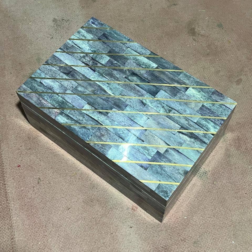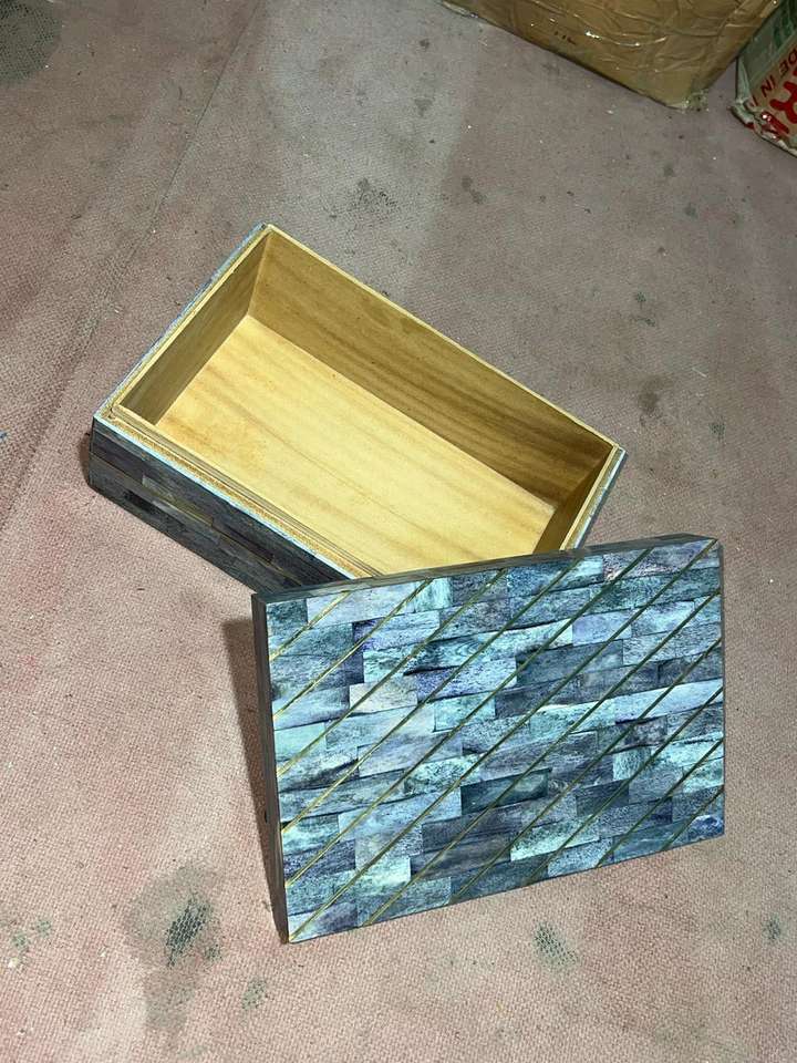 Boîte à bijoux indienne artisanale en incrustation d'os avec style d'amour nautique poli par des créations Zn pour la décoration de la maison