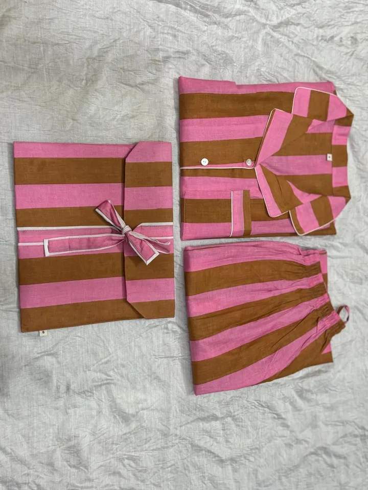 Indian Handmade 100% Cotton Pajama Set Soft Woven Night Wear with Striped Print Pure Cotton Night Suit and Pj's