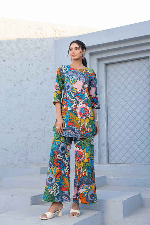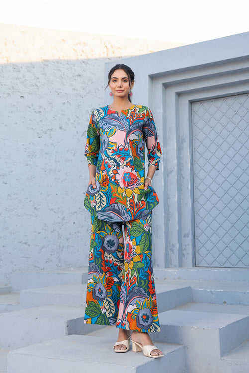 Ensemble palazzo indien fait à la main 100% coton pyjama imprimé floral ensemble de vêtements de salon costume de nuit confortable pour demoiselles d'honneur tailles