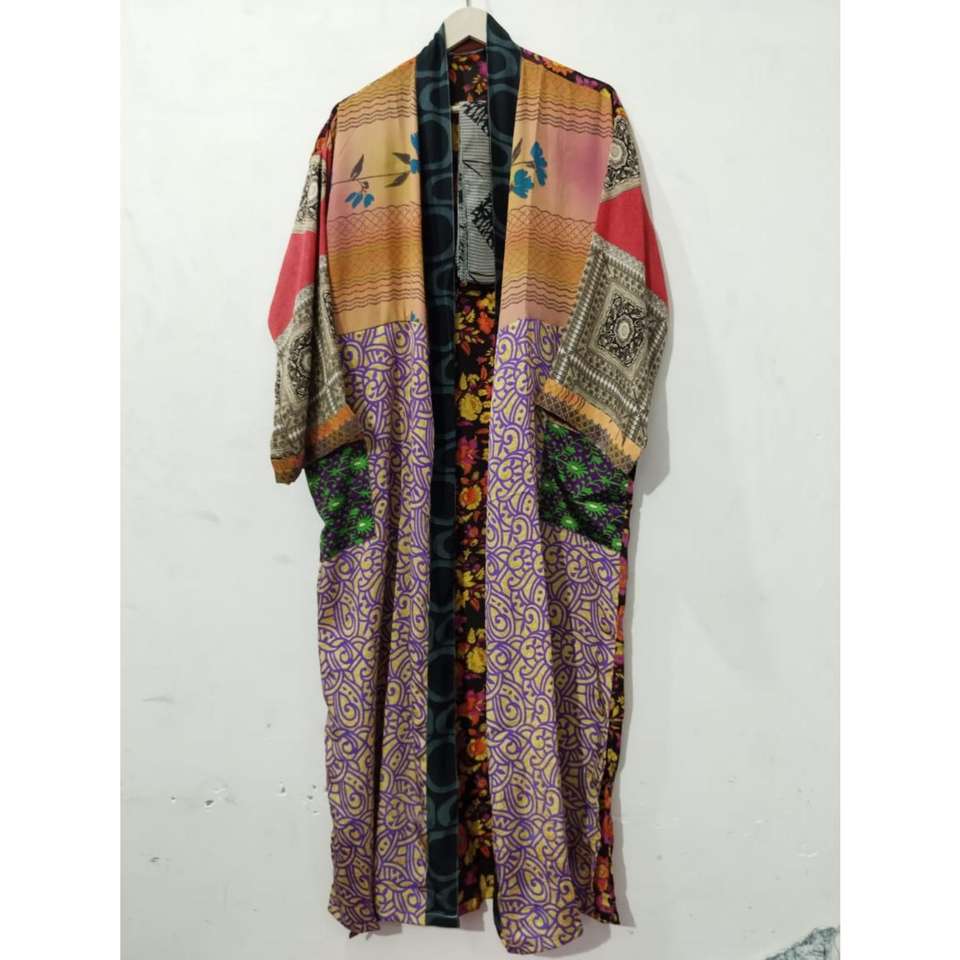 Robe kimono d'hiver en soie 100% faite à la main en Inde, col en V, fermeture à cordon, longueur intégrale, manches longues, douce, vintage, robe de plage pour soirée