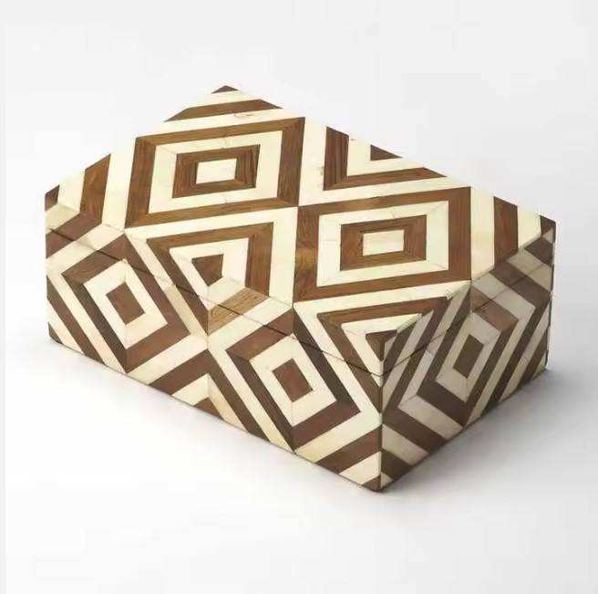 Boîte à bijoux/boîte de rangement en bois incrusté de luxe, artisanale indienne, antique, à motifs floraux, en gros, avec matériau en os