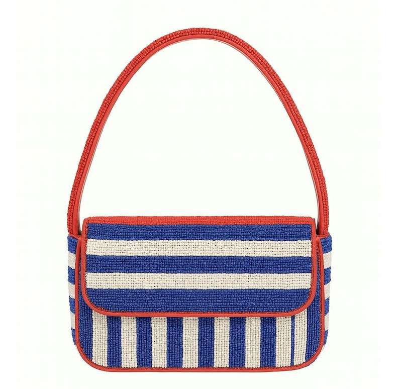 Indian Handmade Beaded Baguette Bag with Handle Casual Handbag Multicolor Bead Assortment Handcrafted by Local Artisans