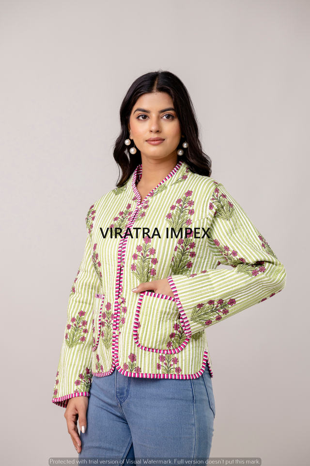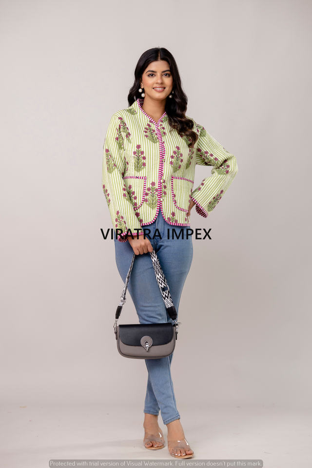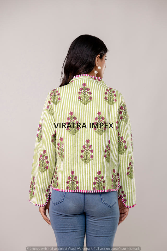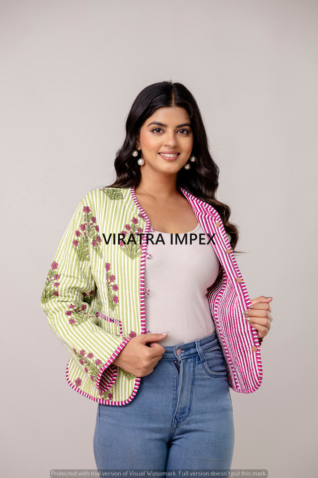 Veste indienne faite à la main en coton imprimé à rayures réversibles bouton imprimé plus proche style bohème veste florale parfaite pour la sortie