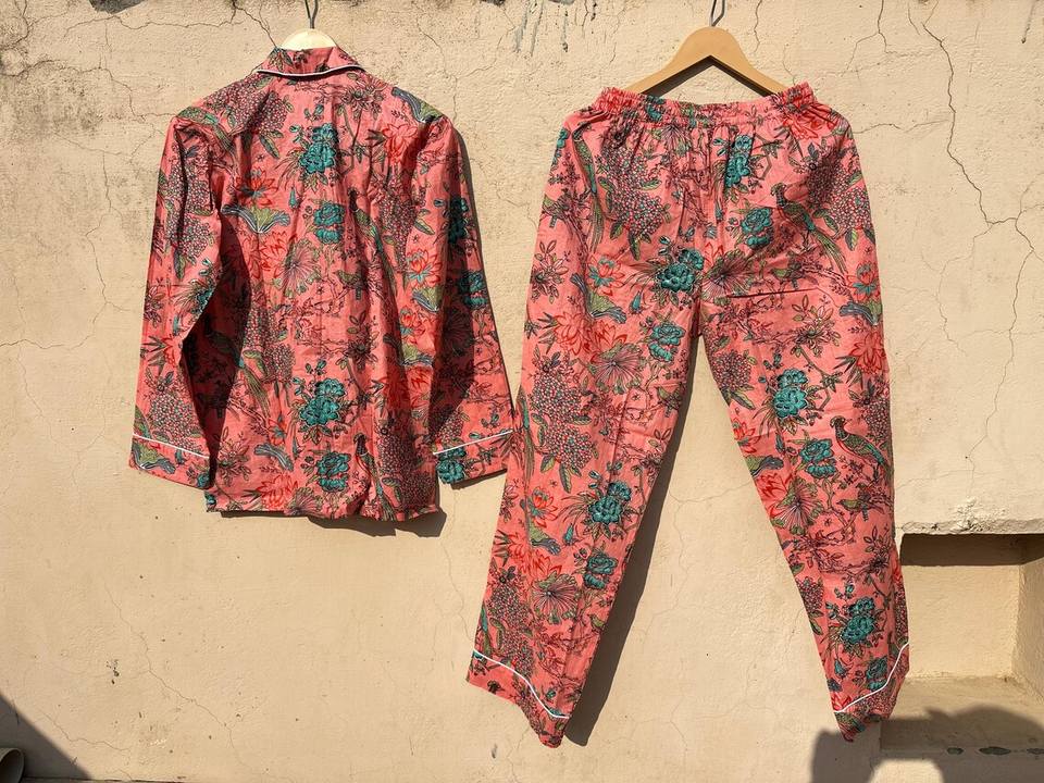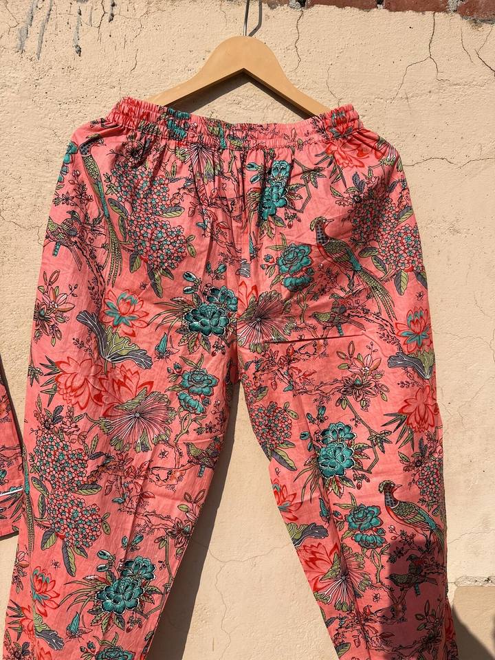 Indian Handmade Cotton Pajama Set 100% Cotton Women's Pajama Set Bird Print Pj Set