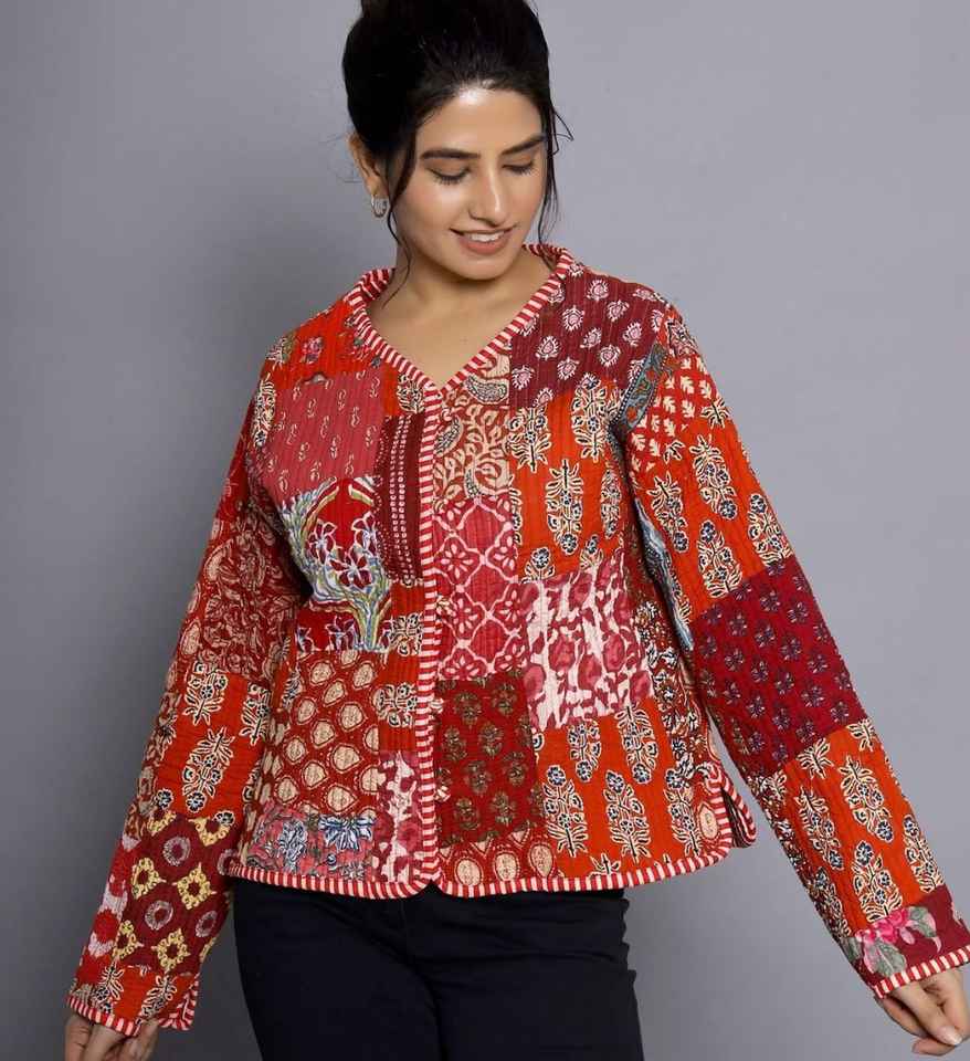 Vestes indiennes faites à la main, vestes à fleurs, vestes de bombardier pour femmes, vestes à la mode vintage, quilte confortable