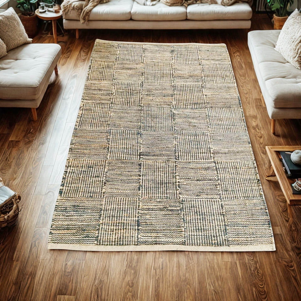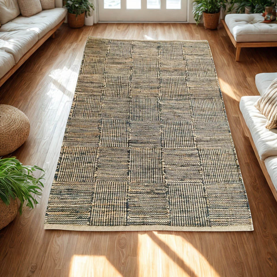 Tapis indien fait à la main en jute à tissage plat motif géométrique tapis en gros exportateur inde ferme décor tapis de jute